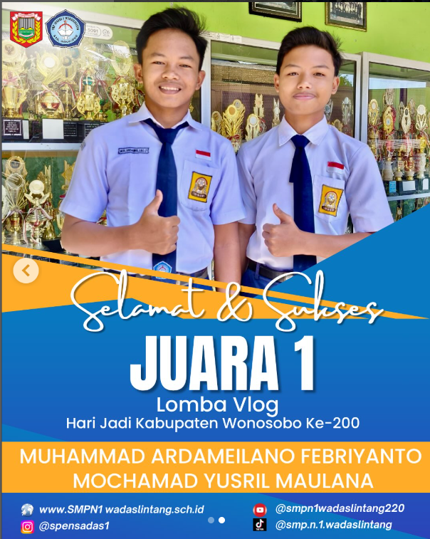 Akhir kata, kami mengucapkan terima kasih atas dukungan semua pihak dalam kemajuan SMP Negeri 1 Wadaslintang. Semoga kehadiran website ini membawa manfaat dan menjadi media sinergi yang positif bagi semua elemen pendidikan.