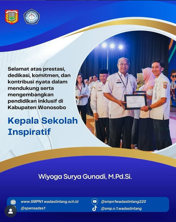 Puji syukur kita panjatkan ke hadirat Allah SWT atas rahmat dan karunia-Nya, sehingga SMP Negeri 1 Wadaslintang terus berkembang menjadi institusi pendidikan yang adaptif terhadap perubahan zaman. Dengan penuh rasa bangga dan syukur, kami mempersembahkan tampilan baru Website Resmi SMP Negeri 1 Wadaslintang sebagai bentuk komitmen kami dalam memberikan pelayanan pendidikan yang transparan, informatif, dan aman di era digital.