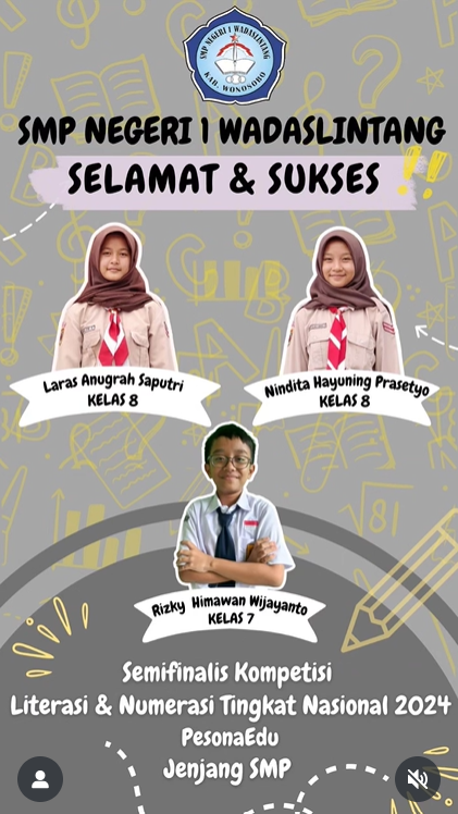 Akhir kata, kami mengucapkan terima kasih atas dukungan semua pihak dalam kemajuan SMP Negeri 1 Wadaslintang. Semoga kehadiran website ini membawa manfaat dan menjadi media sinergi yang positif bagi semua elemen pendidikan.